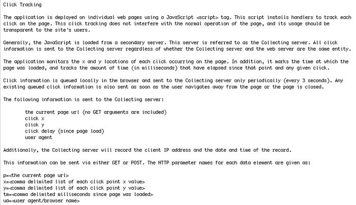 It also took many iterations to get the accuracy of click tracking to account for the huge variance in screen size, resolution and differing website orientation - centred, floating, left aligned...