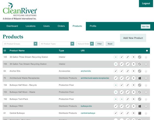 Clean, easy to use. Management interface gives quick access to detailed controls for availability of products to specific company groups and subgroups.