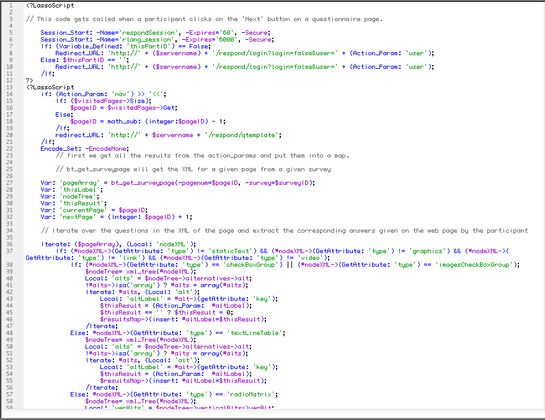 Beetrieve is a reinvention of the survey web service, made into an intuitive web app with an email-like interface. Probably the coolest coding happens in the completely AJAX based module for creating the questionnaire, where the JavaScript front end and the Lasso back end together manipulate and synchronize the XML structure that defines the questionnaire. This XML is then parsed by Lasso into HTML to show to a survey participant when the survey is live.