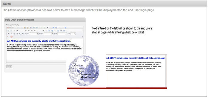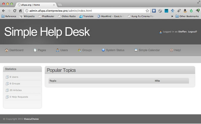 A simple help desk system which allows you to create users and groups for associations with lists that can be selected for distribution with certain topics. Simple easy to use UI making the creation of help articles much easier. At this time, there are only emails without an actual ticket number. System was designed with email only per the client.