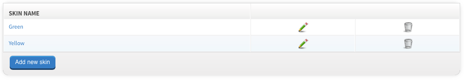 To add a new skin, click the "Add new skin" button at the foot of the list view.