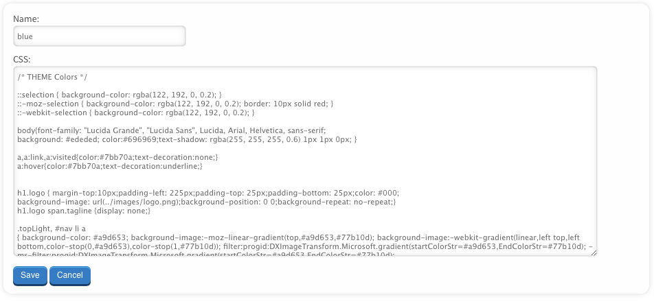 CSS: Any text entered in this field is included directly as an external stylesheet on all pages, and is loaded after the LassoMailer CSS file so as to override the default presentation.